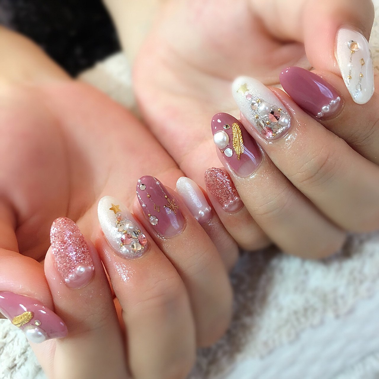 冬 クリスマス 女子会 ハンド ビジュー Monfavori モンファボリ のネイルデザイン No ネイルブック
